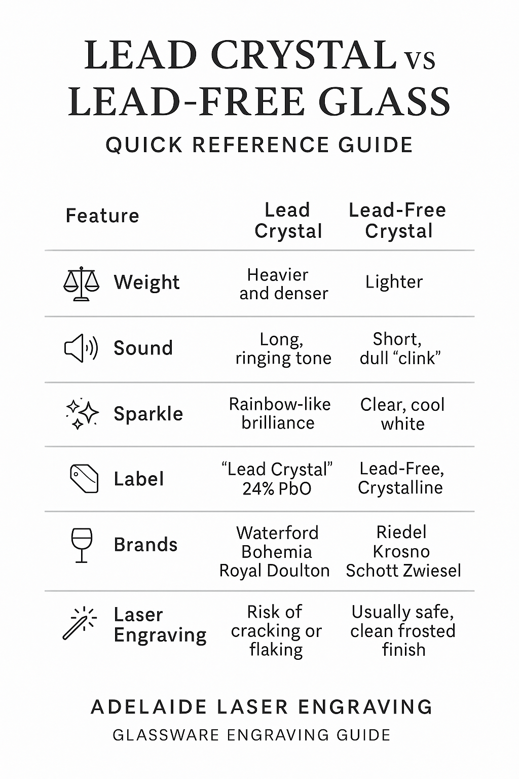 Not all glass behaves the same under a laser. Traditional crystal often contains lead oxide, which gives it that brilliant sparkle but also makes it more fragile and less suitable for engraving.